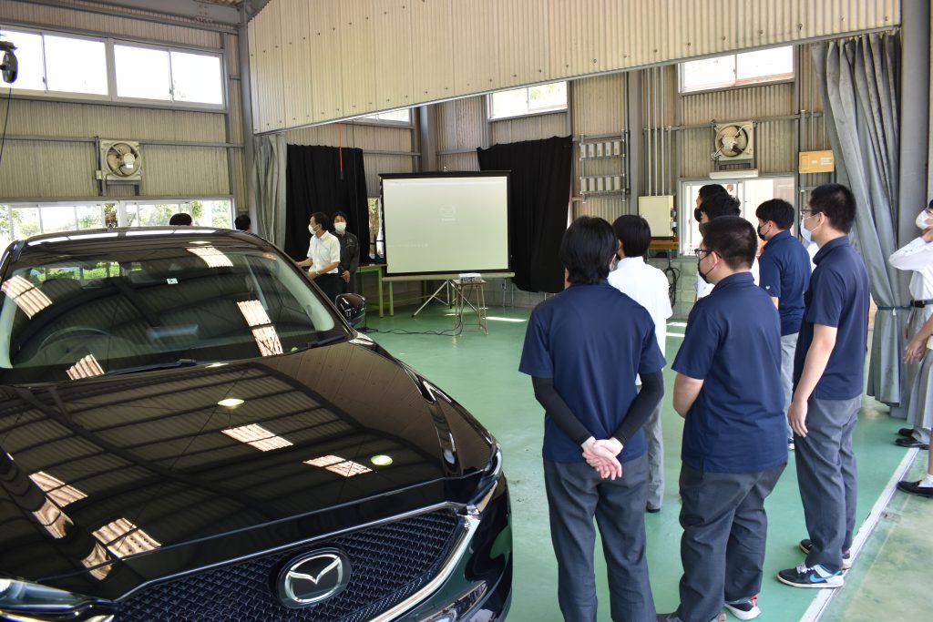更には、株式会社南九州マツダ 様のご厚意で『ロードスター』をはじめ『MX-30』『CX-5』の3台をご準備していただき、実習場で特別体験授業や同乗試乗体験を実施していただきました。