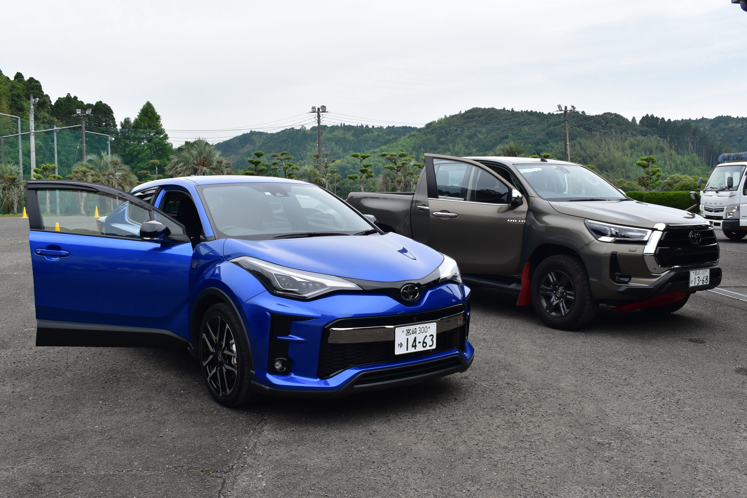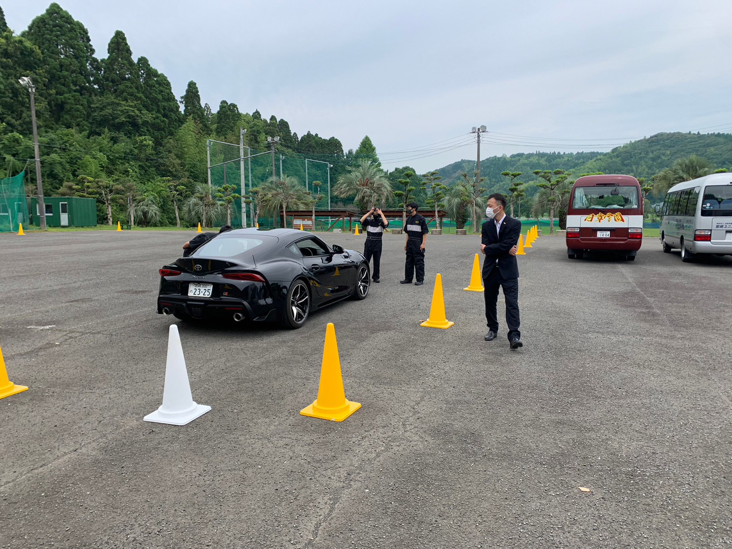今回の卒業生講話は、宮崎トヨタ自動車株式会社に勤務している若松 海斗さんにご協力をいただき『 在学中の思い出 』や『 現在の業務内容 』『 自動車整備を目指したきっかけ 』などの講話を実施していただきました。更には、宮崎トヨタ自動車株式会社 様のご厚意により、『初代クライン(フルレストア車)』『GRスープラ』・『HILUX』・『CH-R GRスポーツ』・『新型プリウス』の5台に加え、立ち乗りタイプ超小型電動モビリティ『C⁺Walk T』をお持ち込みいただき、実習場で車両説明や車両展示、同乗試乗体験を実施していただきました。