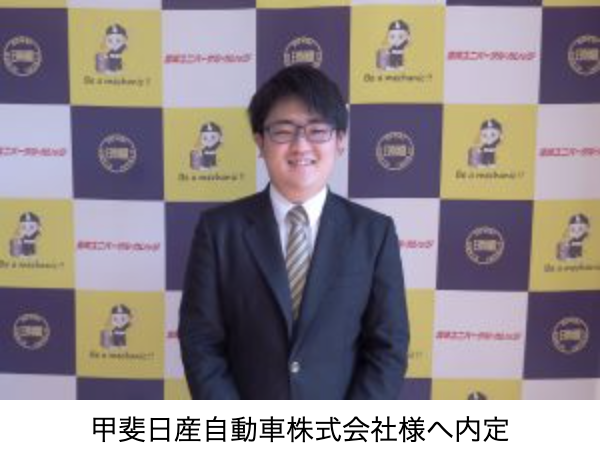 1年生1名(令和2年4月入学)が甲斐日産自動車株式会社様への採用が内定しました!!