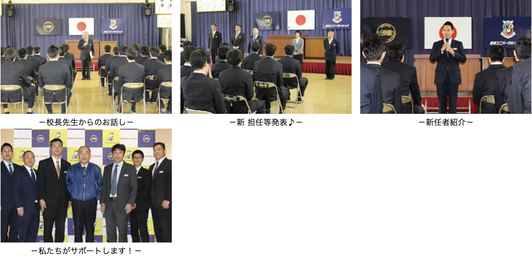始業式では、まず校長先生より今年度から新規採用された先生の紹介のあと、校長先生や諸先生方から