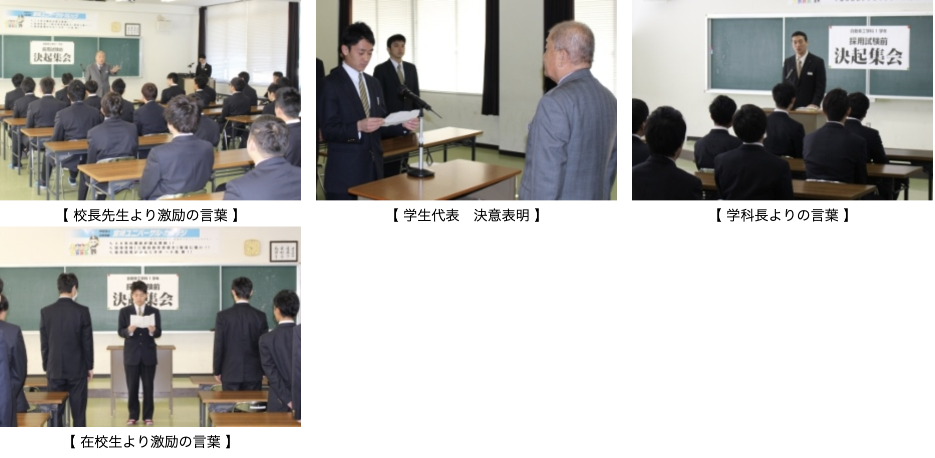 近年の自動車業界では、1年生の1月末から就職採用試験が始まります! ほとんどの学生が、2年生への進級前に就職内定をいただける状況です。 今年度最初の就職採用試験が始まる前の本日、「就職採用試験前決起集会」を実施しました!!