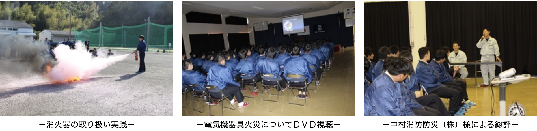 さらに、中村消防防災(株)様のご協力により、実際に消火器を使用した消火訓練も行い、消火作業について学ぶことができました。